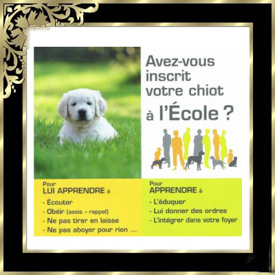 Un chiot qui a eu la possibilité de fréquenter l'école du chiot, équivalent de notre « maternelle », a toutes les chances d'intégrer la vie de ses maîtres et celle de notre société dans les meilleurs conditions.